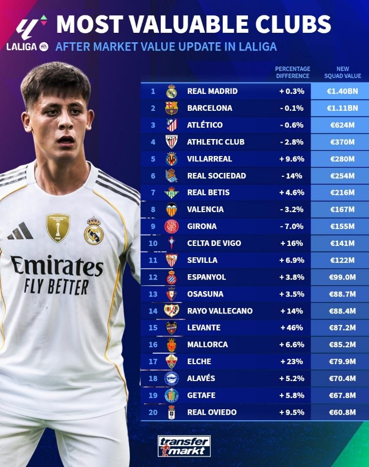 Đức trước đây đã cập nhật giá trị của người chơi La Liga và lấy danh sách giá trị nhóm La Liga hiện tại, như sau: